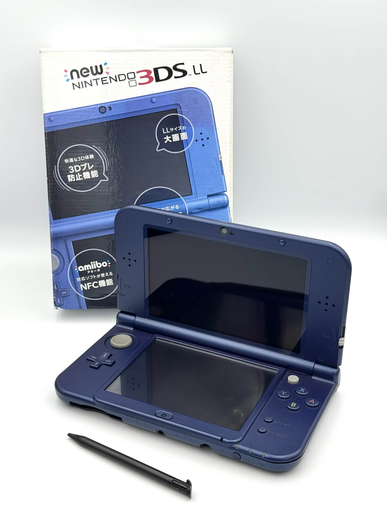 🇯🇵 New 3DS LL japonaise originale en bleu métallique, vendue avec sa boîte d'origine, ses manuels et ses cartes AR .