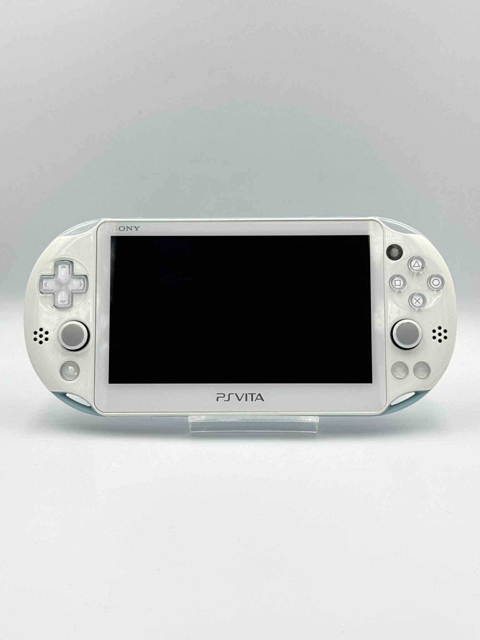 🇯🇵 Authentique PS Vita 2000 japonaise blanche et bleu clair , dotée d'une palette de couleurs bicolores épurée et élégante qui se démarque des modèles noirs classiques.